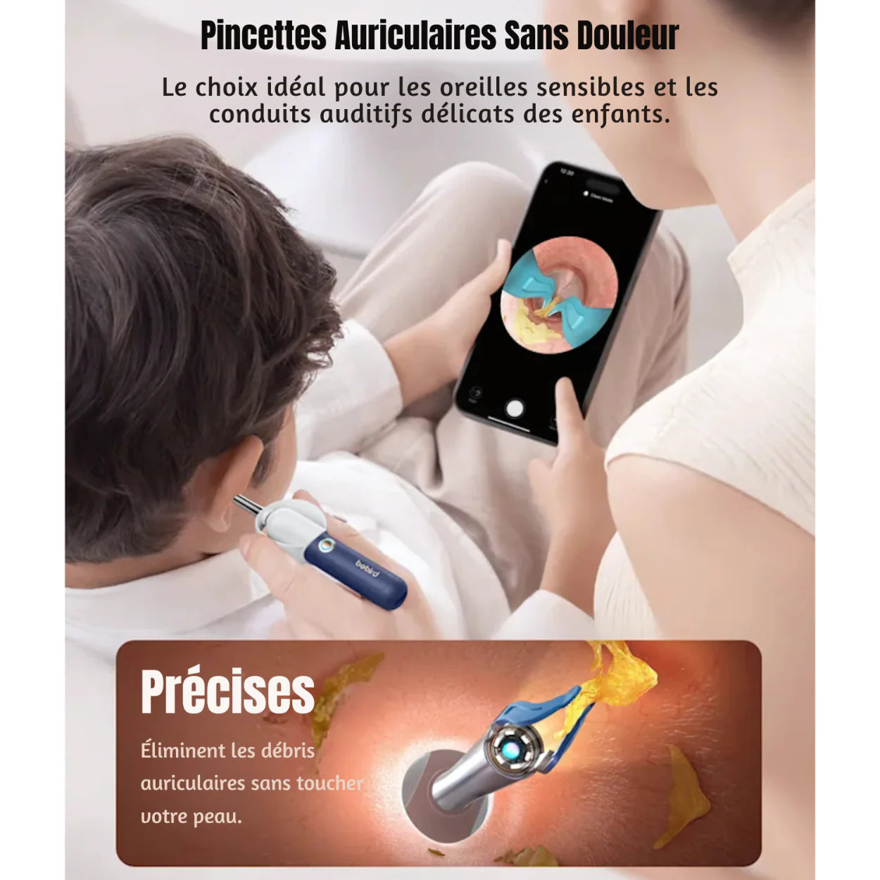 - Idéal Pour Les Enfants : Les plus jeunes collaborent mieux lorsqu’ils peuvent visualiser la procédure, réduisant les crises ou l’angoisse lors du nettoyage des oreilles.