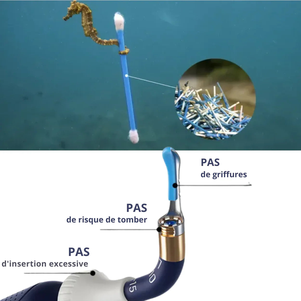 - Fini les Cotons Jetables : Remplacez définitivement les tiges d’oreille à usage unique, réduisant ainsi les déchets plastiques et les risques d’irritation ou de blessure au conduit auditif.